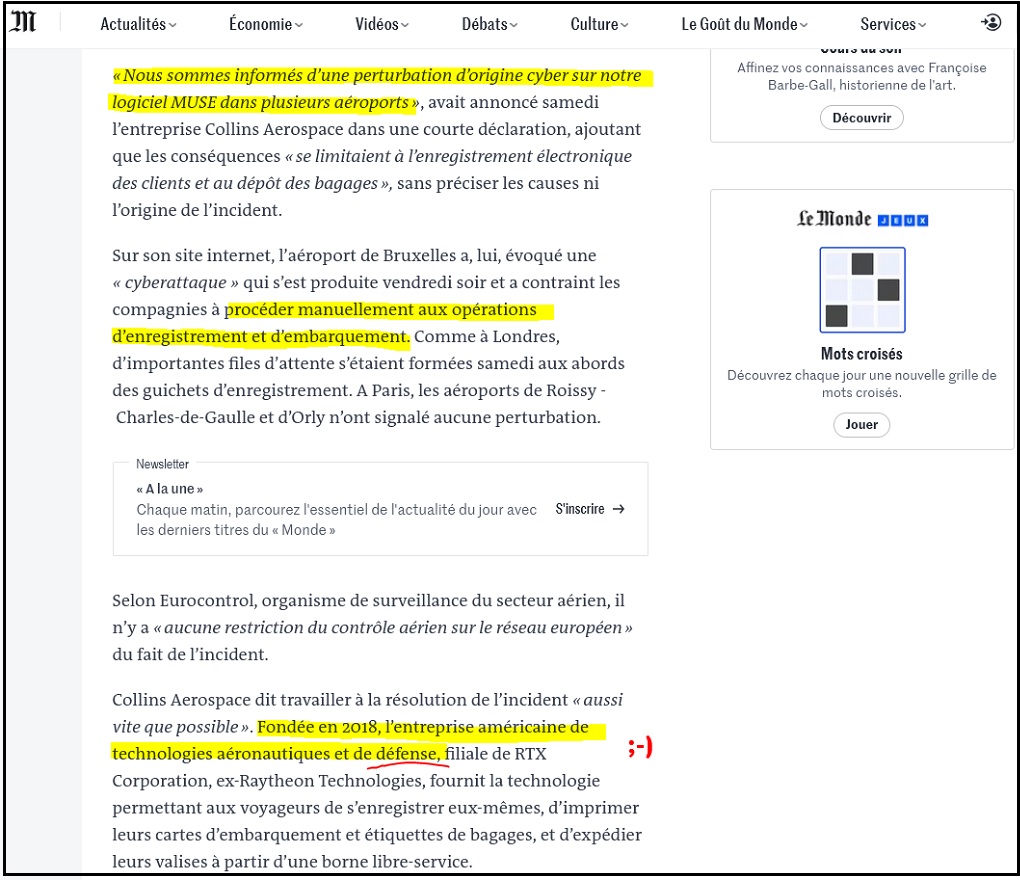 1. Cyber attaque des aéroports européens : C'est un scandale ! Que fait la police ;-)