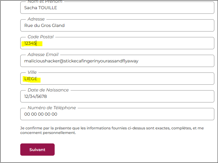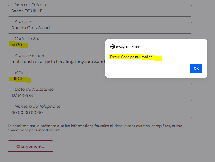 contrôle du code postal (5 chiffres en France)... Quand même, ils ne se sont