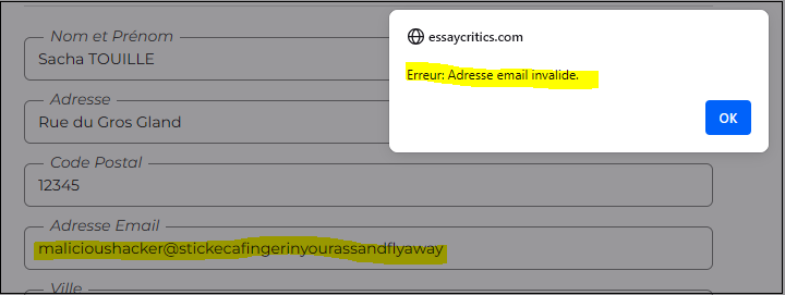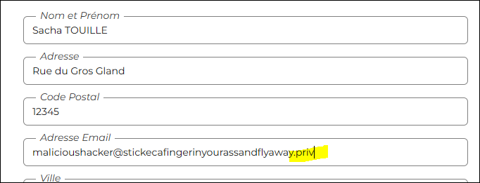 Pour leur faire plaisir, on rend la fausse adresse email un peu plus "conforme"...
