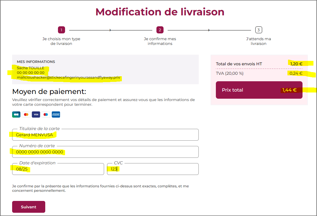 Et là aussi, ils ont fait un contrôle... sur l'adresse email : juste pour mieux enfumer car ce qui les intéresse uniquement, c'est le numéro de la carte bancaire !