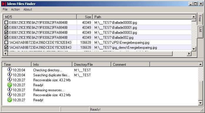 To recover valuable disk space, IdemFilesFinder can select automatically the duplicate files to delete, or you can select them manually.